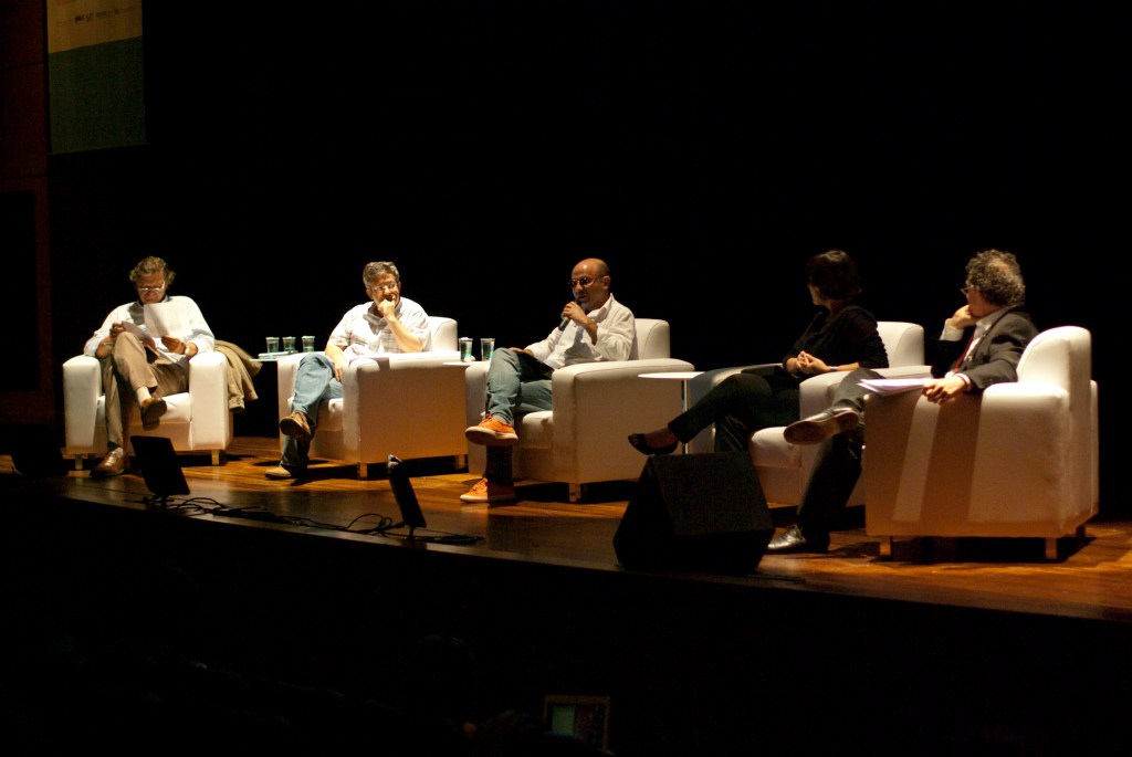 Sergio Burgi, do IMS, Augusto Massi, da Cosac Naify, Renata Motta do SISEM e Danilo Miranda, do SESC; Mediação: Iatã Cannabrava