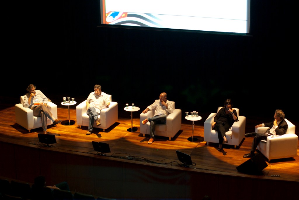Sergio Burgi, do IMS, Augusto Massi, da Cosac Naify, Renata Motta do SISEM e Danilo Miranda, do SESC; Mediação: Iatã Cannabrava